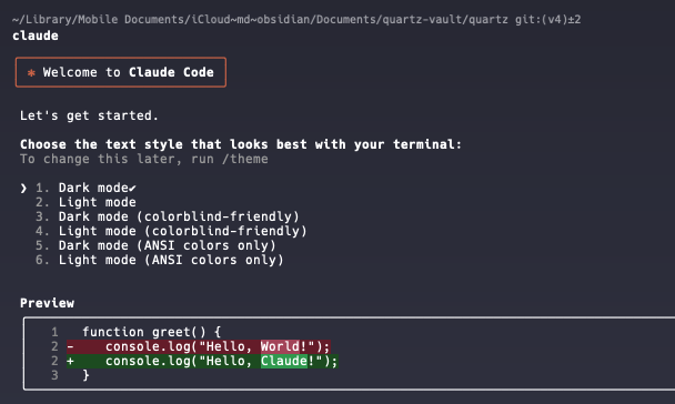 claudeAnd that’s it! First it will ask you what color themes you like…