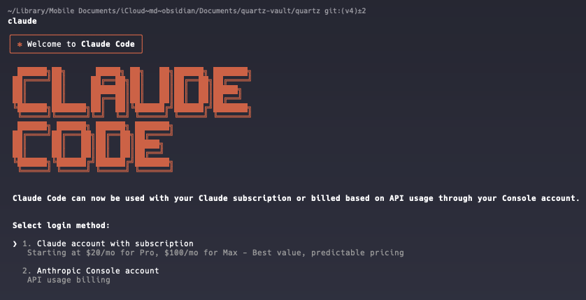 cd "/Users/naderbaradar/Library/Mobile Documents/iCloud~md~obsidian/Documents/quartz-vault/quartz"And then run ClaudeCode by issuing this command: