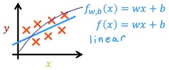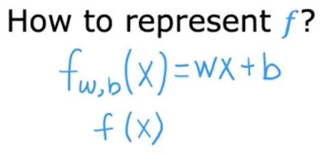 The values chosen for w and b will determine ŷ based on input feature x. Sometimes we will refer to this same notation as f(x) as shorthand